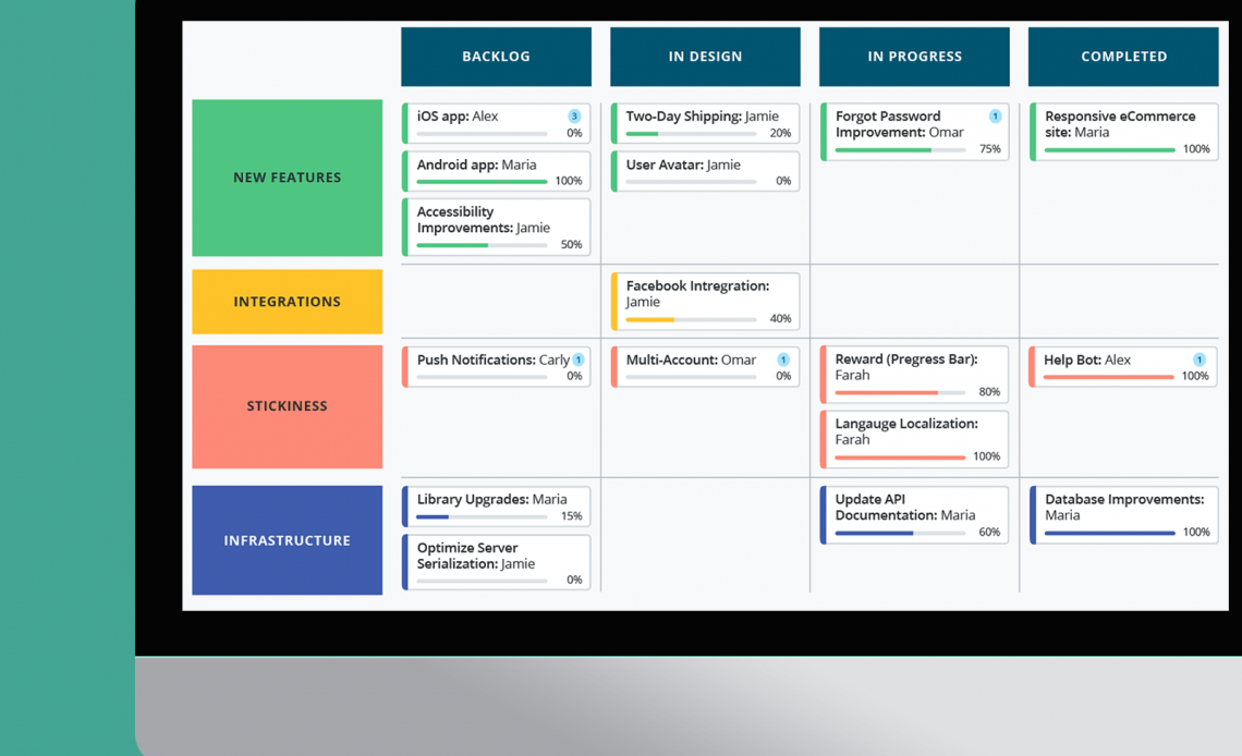 Kanban roadmap is the one that is more prevalent. Here you assign goals and tasks to teams to complete. In a Kanban board, you will be able to which task is yet to start, in progress, or which one is complete. Through this, you can see the live updates on the status of each project and team. You can also get a list of the tasks under each category.
